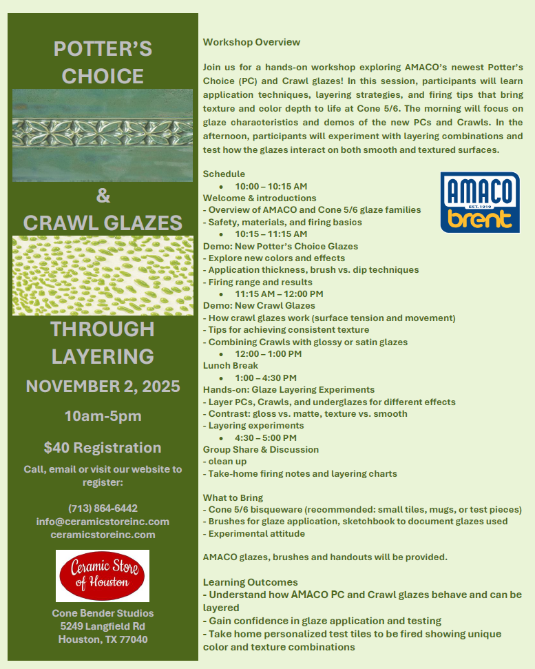 Amaco PC & Crawl Glazes through Layering November 2, 2025 10-5